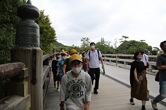 やや曇り空の9時40分。内宮を60分ほどかけて、鳥居をくぐる作法をしてみたり、見事な樹齢木に耳を添え、流れる音を聴いてみたり引率の先生の話や自分たちが調べてきたことを確認しながら、神秘な空間を堪能してきました。おかげ横丁も散策し、お土産を買いたい欲求を抑えながら、岩戸屋さんで昼食をとりました。