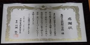 11月24日水曜日、この取組について亀岡警察署長より感謝状をいただきました。