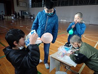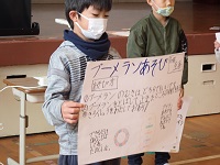 1・2年生の児童が、考えたゲーム遊びのルールを説明したあと、5つのブースに分かれ、そのゲーム遊びを全校児童が体験させてもらいました。