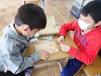 京都府産の桧の将棋は各教室に1個配布し、休み時間に活用できるようにしています。