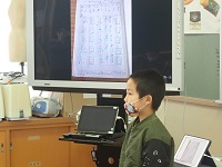 アタックノートの発表は、さすが6年生。ワイドにスムースを上手く使いわけ表示しながら、指示棒を使ってテコの原理や種類について紹介しています。前回の振り返りで「表示の工夫や説明の工夫」について改善をしてプレゼンをしています。対応力も早く何より改善策を考え実践しているところが凄いですね。