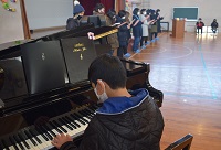 お母さんに頼まれ、在校生がピアノ伴奏をしました。もちろん自主練習。ピアノと歌声を合わせたことは、今日まで一度もなく、「ぶっつけ本番」でいざ合唱!