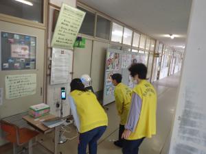 7時30分にはバスが到着する中庭に待機して頂き、児童らの到着を待って頂いています。