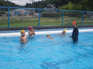 連日の真夏日を乗り切るのにも都合が良いです。監視体制を補充支援する必要があり、なかなか人材確保・負担は大変ですが、安全第一を考えると必要なことと考え、補助に入っています。児童らは泳ぎを忘れた(えっ、泳げた?)とか、教えて欲しいとか色々口にしながらも授業を楽しんでいます。