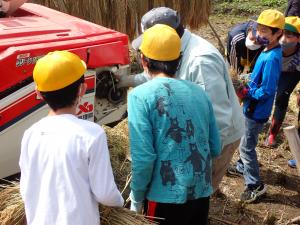 「米づくり」が5年生の社会(総合)であるので、5年生が中心にもなっています。例年に比べ寒暖(雨量)など天候の関係や、土壌の豊か(貧し)さなどの関係もあってか少し、小粒で収穫量も少ないと感じています。