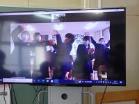 画面を通じて、料理の作り方やその特徴などを教えてもらいました。制作してもらった動画は、期間限定ではあるのですが、亀岡市が運営する情報データ取り扱いのフィルターに干渉され校務パソコンではみられないので、ホームページ上でリンクが貼り付けられないのが残念ですが、児童が持っているタブレットでは拝見することができました。