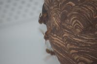 9月4日、このお盆以降から作り始めたであろうスズメバチの巣が現認されました。3階理科室の東北側の窓辺、換気扇ダクトの傍らに作っています。出入り口は数カ所あり、巣の製作途中なのでしょうか?何処かへ飛来し戻ってきては再び何処かへの繰り返し。結構な数の個体が飛び交っています。幸いダクトにはネットがしてあるので、校舎侵入には手間暇がかかるようです。