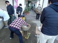校内の樹木を伐採したときのものや、職員の家で伐採した木を燃料(薪)に火を起こし、お釜さんで湯を沸かし、一晩つけ置きした餅米を杵をつかって、石臼でついてみました。