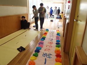 2月21日は、6年生を送る会でした。3学期が始まってから5年生は、11人の実行委員の人を中心にして、どんな送る会にしたら良いのか話し合いを重ね、全校に呼びかけて、出し物や歌の練習などを重ねてきました。また会場の飾り物を、みんなで分担して作り上げ、当日は、全校みんなの気持ちのこもった送る会になりました。6年生だけでなく、1年生から5年生の中にも涙がこぼれる児童がいて、6年生へ感謝の気持ちを伝えるために、本番まで一生懸命がんばってきたことがよくわかりました。当日は、各学年のメッセージがたくさんつまった出し物。6年生は、各学年での思い出を、発表を通して振り返ってくれました。最後には、4年生がつくったくす玉をわった中から、リーダーのバトンが出てきましたが、そのバトンを6年生から5年生へと渡されました。