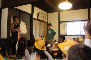 森の自然こども園東本梅の園児さんと、園の近くにある普済寺に出かけました。園児さんとペアになって一緒に歩き、列の間が開いてしまった時には、1年生が「いくよ!」と自然に園児さんに声をかける姿が見られました。道中、山に向かって「やっほー!!」とみんなで声をそろえて叫びました。やまびこが返ってくると、大喜びでした。交流の会を重ねるたびに仲が深まっているように感じます。普済寺では、どんぐりや葉っぱ、木の枝などたくさんの秋のものがありました。拾ったものをじっくりと観察し、色や大きさの違いに気づいたり、「なんでどんぐりにあながあいているんだろう。」と疑問を持ったりと、秋を感じながら活動することができました。また、園児さんと一緒におにごっこをしたり、お弁当を一緒に食べたりして楽しいひとときを過ごすことができました。