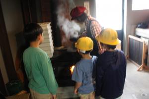 みんなで収穫したさつまいもで、焼き芋パーティーをしました。アルミホイルに包んである芋を、一人一つずつおがくずの中に入れました。さつまいも堀りでお世話になった森さんやいろいろな先生に、準備や火の番をお世話になって、おいしい焼き芋が完成しました。「お店のよりおいしい!」と、嬉しそうにおなかいっぱい食べていました。とても楽しい活動になりました。