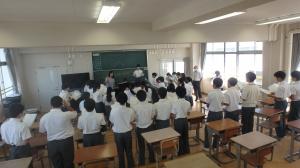 1年生の全クラスで、非行防止教室を行いました。講師には、亀岡警察署生活安全課少年係スクールサポーターの方々に来ていただきました。様々な問題行動や犯罪について「心にストップをかける」など、防止するには自分の気持ちや行動をコントロールし、軽はずみに行動しないことなどを学びました。