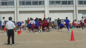 1年生、2年生がそれぞれ球技大会を行いました。今年は、1年生・2年生ともにドッヂボールを行いました。クラスで円陣を組んだり、声をかけて作戦をたてたり、楽しそうに活動していました。各学年とも、体育委員が司会や進行などを行い、自分たちで大会を盛り上げました。