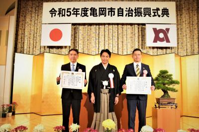 令和5年11月3日、この条例に基づき、亀岡市自治振興式典と併せて第2回「かめおか環境賞」を表彰いたしました。