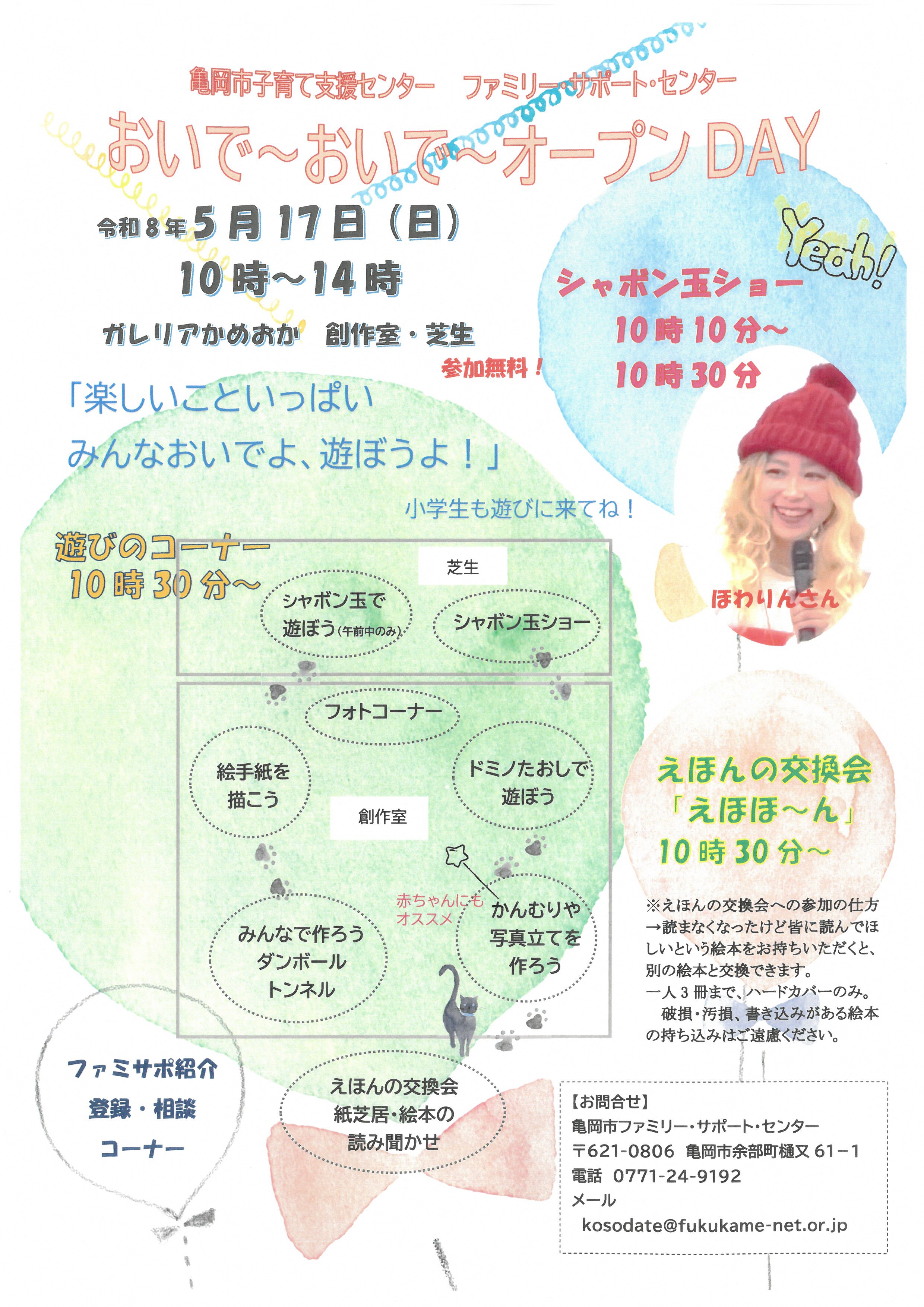 亀岡市子育て支援センター ファミリー・サポート・センター おいで~おいで~オープンDAYを開催します。