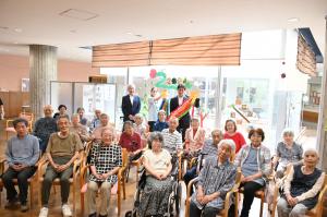 7月2日、ガレリアかめおかデイサービスセンターの利用者の皆さんから、平和への願いを込めて一つ一つ丁寧に折られた千羽鶴を寄贈いただきました。
