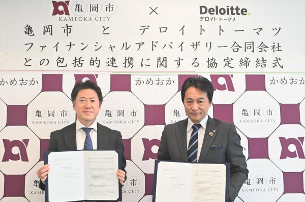 亀岡市とデロイトトーマツファイナンシャルアドバイザリー合同会社とは、相互に連携・協力して、スタジアムや亀岡市が持つ豊かな歴史文化、観光地などの資源を通じて地域の産業振興に取り組み、地域経済の発展を促進することを目的として、包括的連携に関する協定を締結しました。